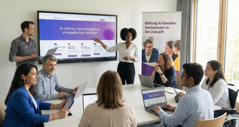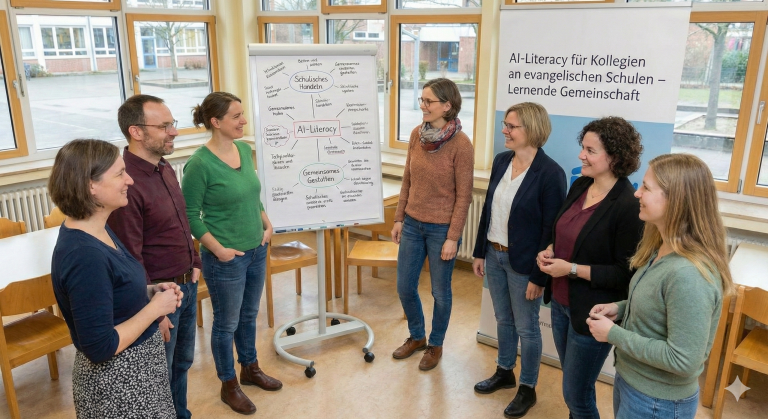 Diese Plattform ist exklusiv für die Schulen programmiert worden, die am Projekt „AI-Literacy für Kollegien an evangelischen Schulen“ teilnehmen. Als „Lernende Gemeinschaft“ wollen wir uns unterstützen und gemeinsam die Bedeutung von AI-Literacy für unser schulisches Handeln gestalten.
