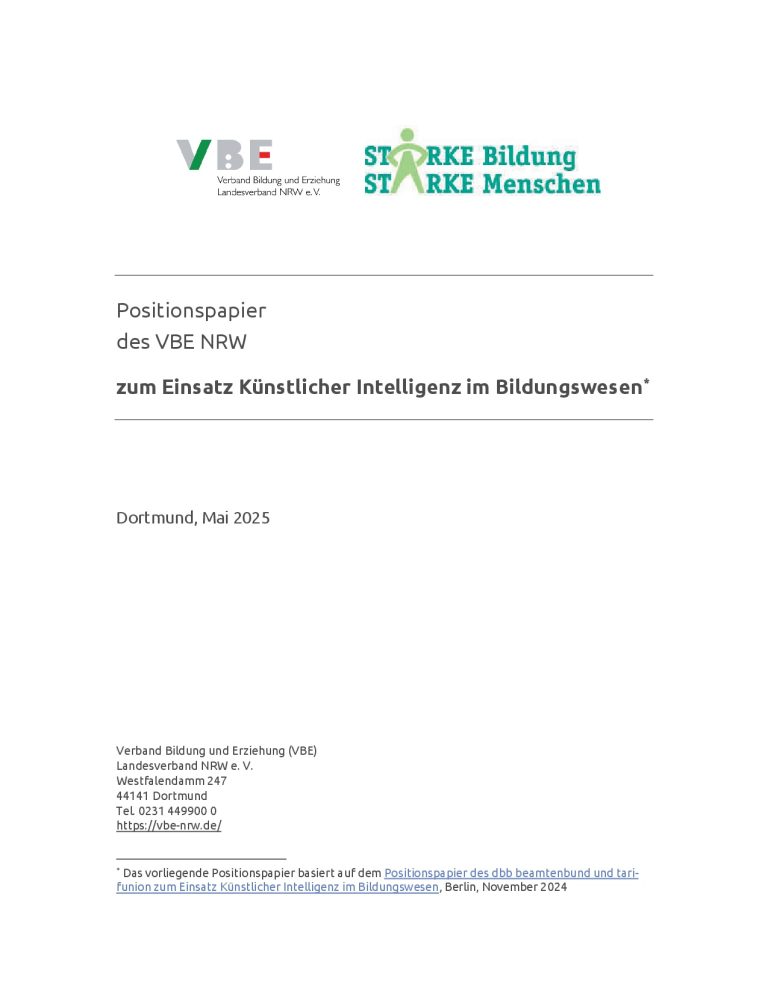 VBE NRW Positionspapier KI im Bildungswesen 2025